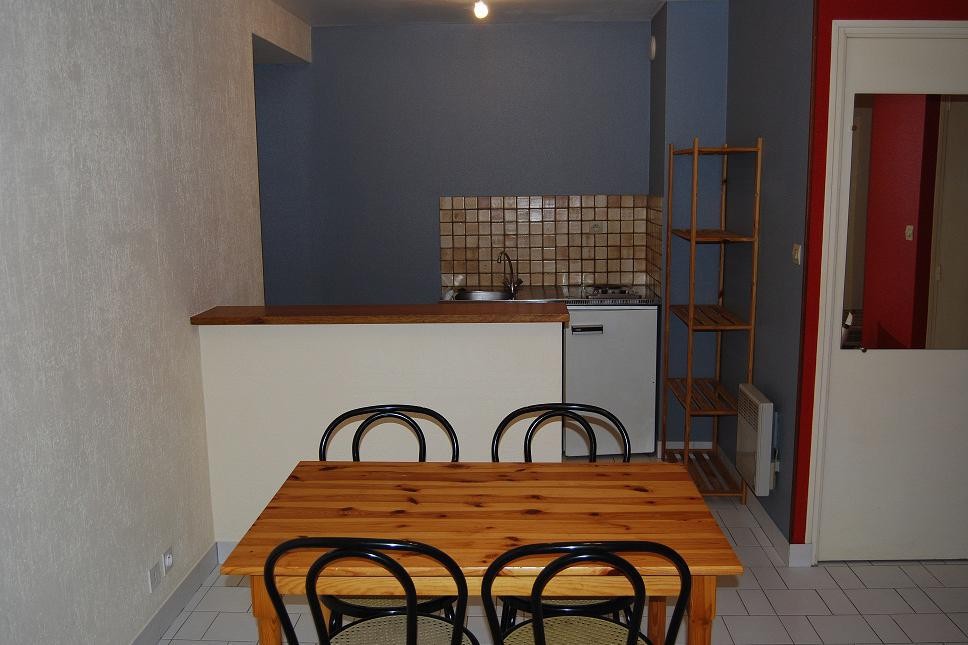 A REDON, proche écoles et commerces, appartement de Type 1 meublé en très bon état, lumineux, 1er étage, 25 m2, exposition SUD et OUEST. Entrée avec placard-penderie, grande pièce de vie avec coin nuit, kitchenette équipée, salle d’eau avec douche, lavabo et WC et emplacement pour machine à laver. Parking extérieur dans cour privée. Local à vélos.